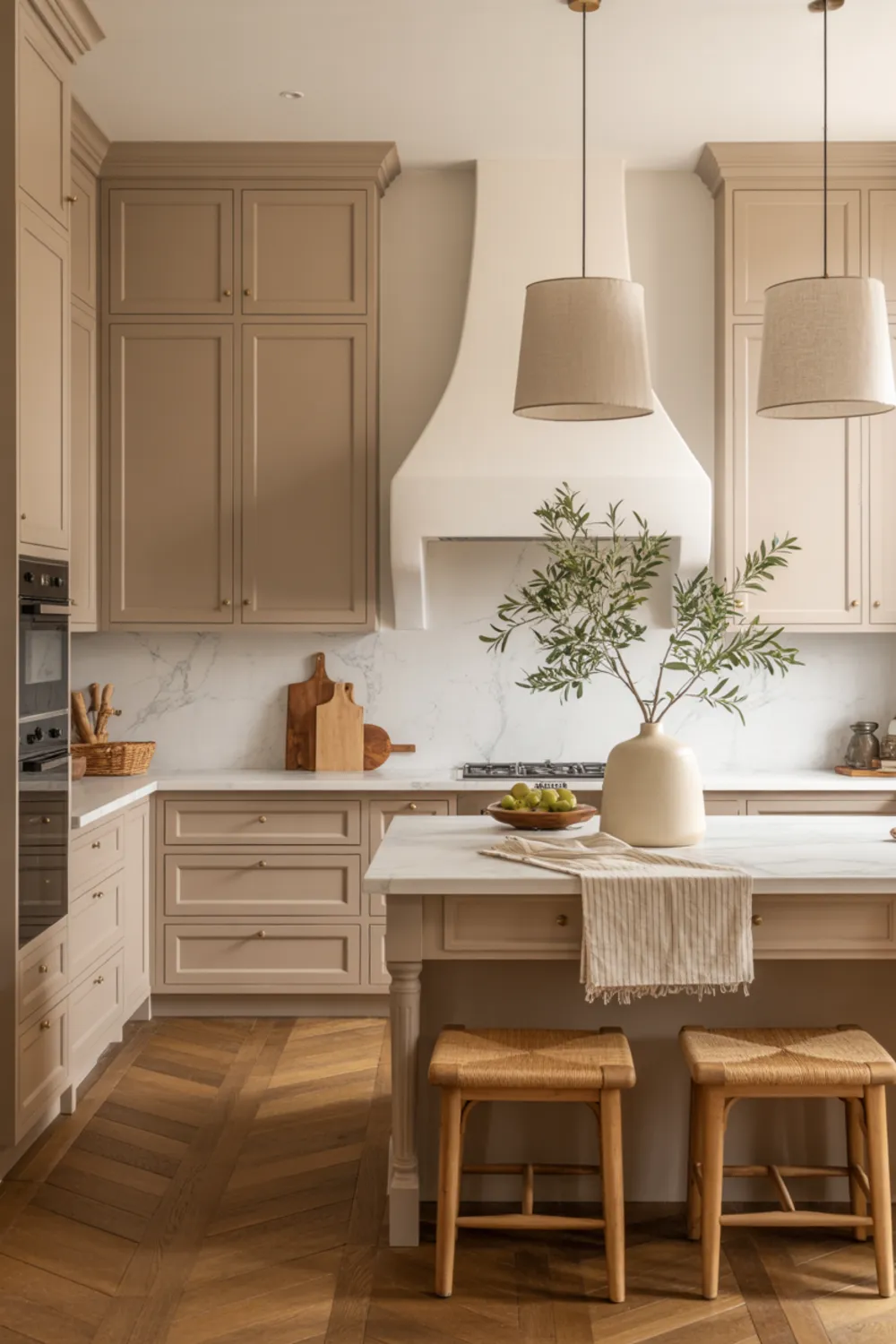 The palette stays neutral but never flat, which makes your kitchen feel cozy year-round, not just in one season.