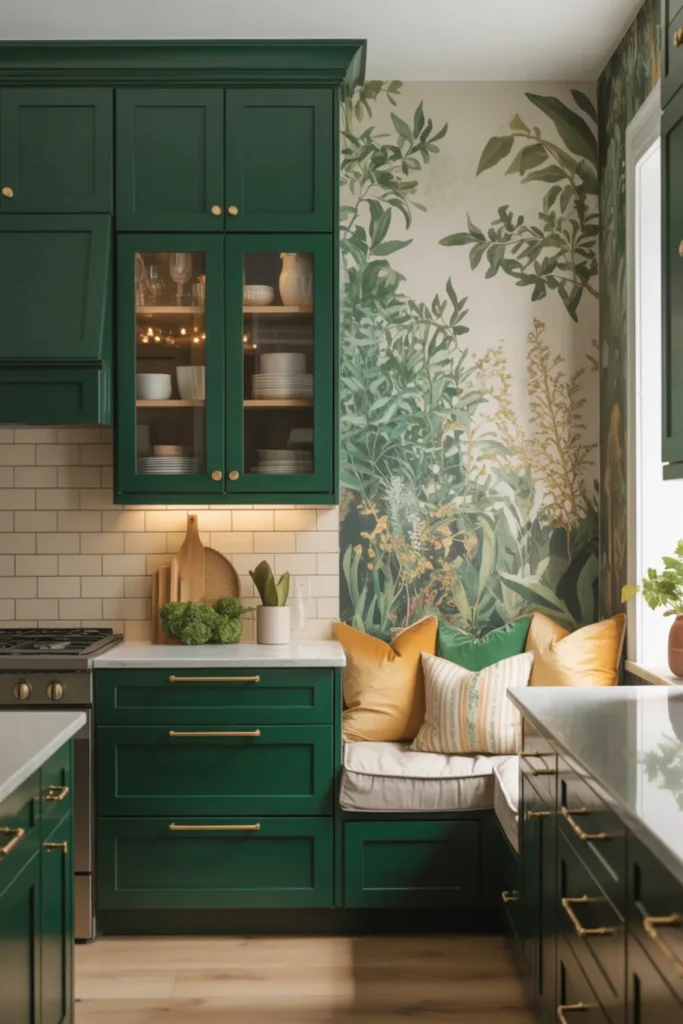 38. Green Kitchen Cabinets With Wallpaper for a Statement Moment