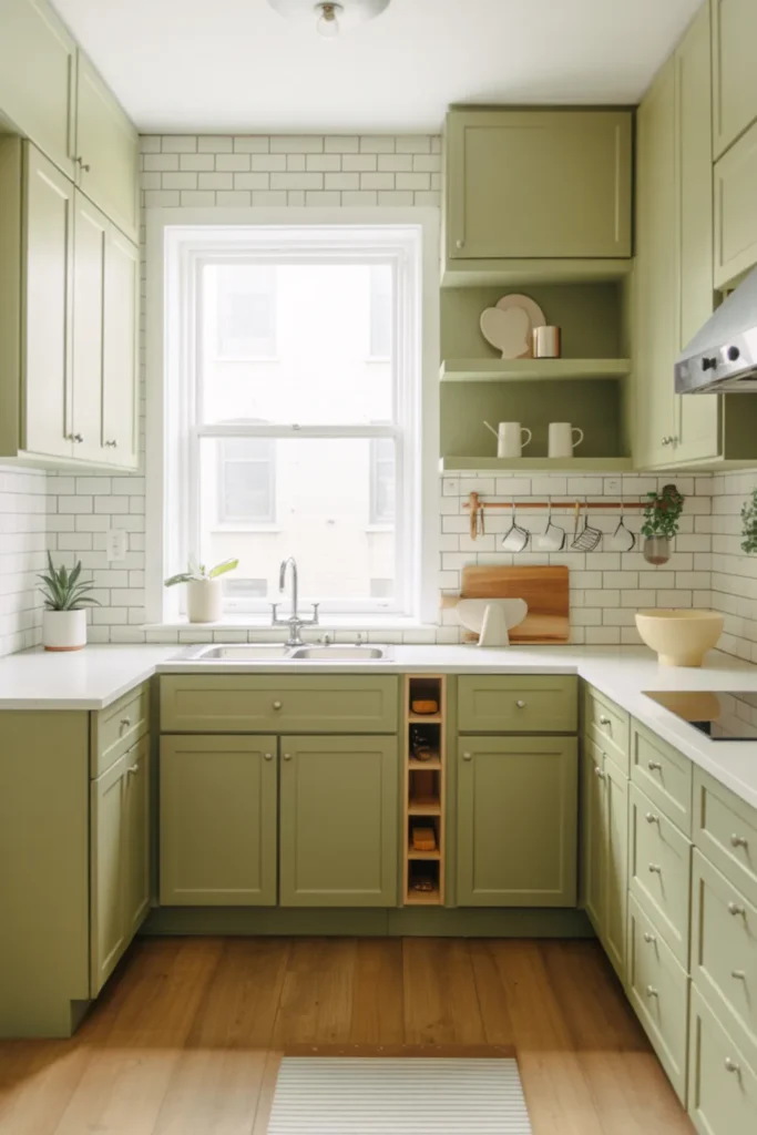 40. Small Kitchen Green Cabinets That Still Feel Bright