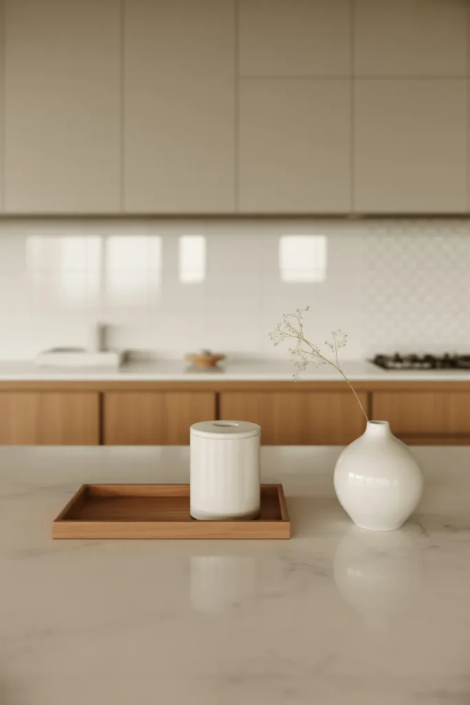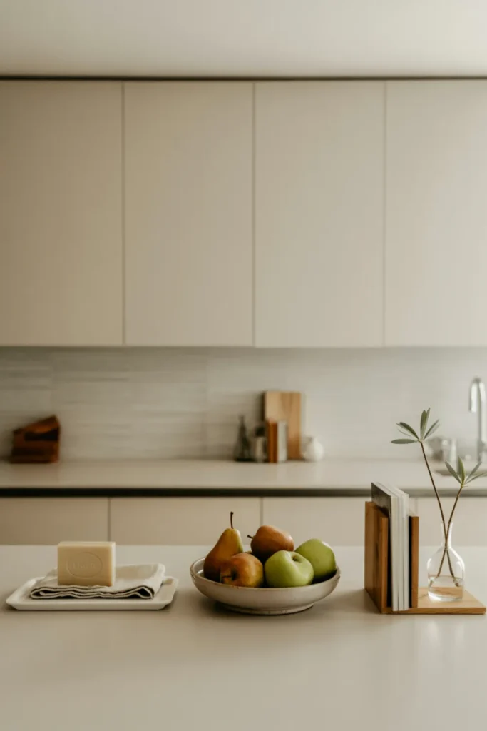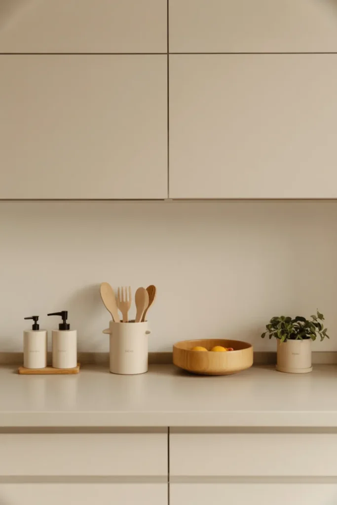 6. Minimal Kitchen Counter Decor With Neutral Accessories Only