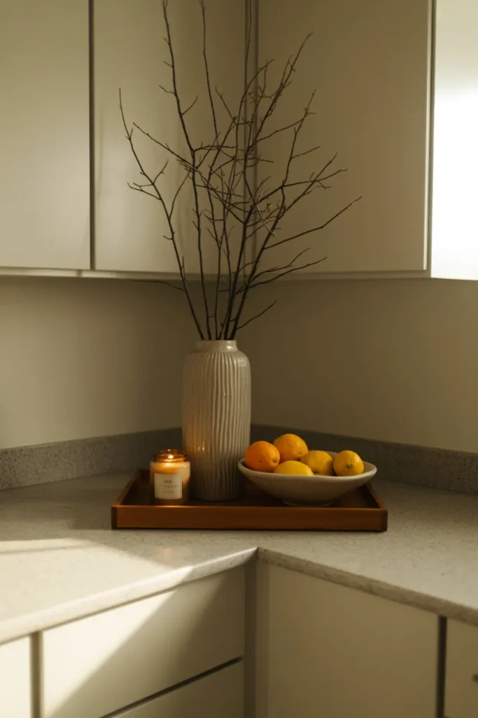 19. L Kitchen Decor: Anchor the Corner With a Tray + Tall Vase