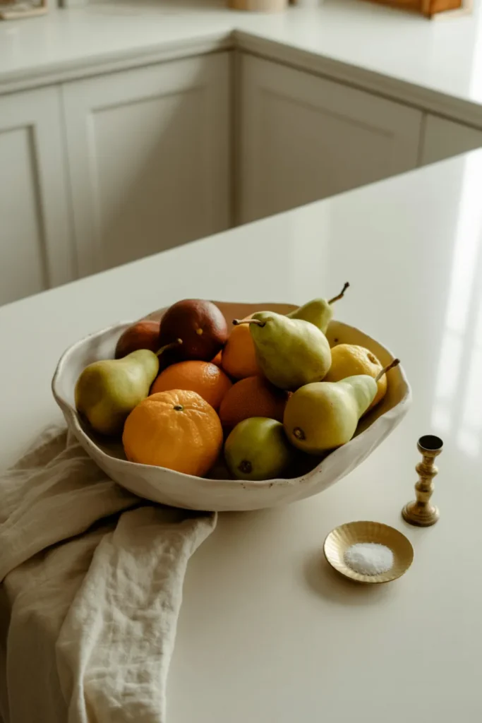 2. Decorative Bowl Moment (Citrus, Pears, or Artful Faux Fruit)