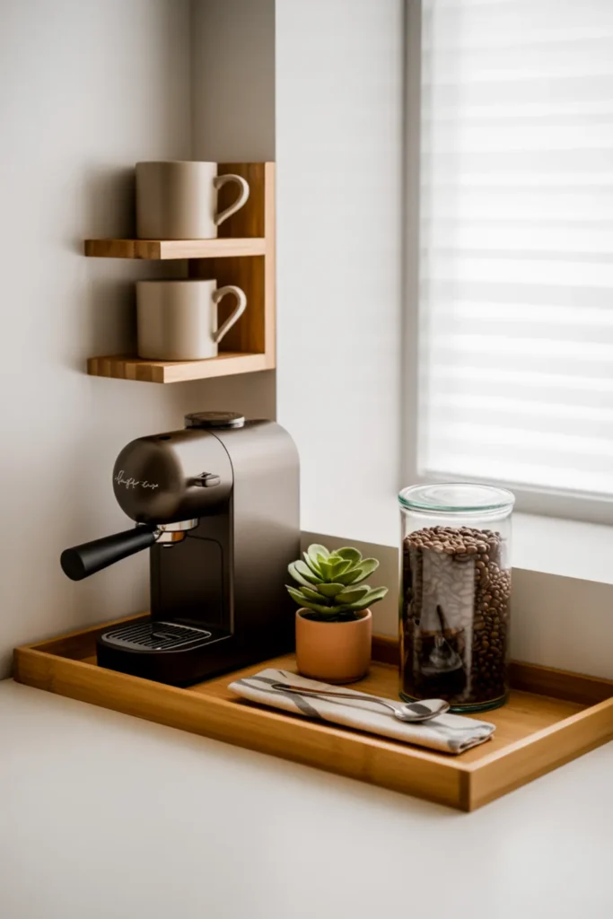 5. Coffee Station Corner With a Mini Shelf + Mugs