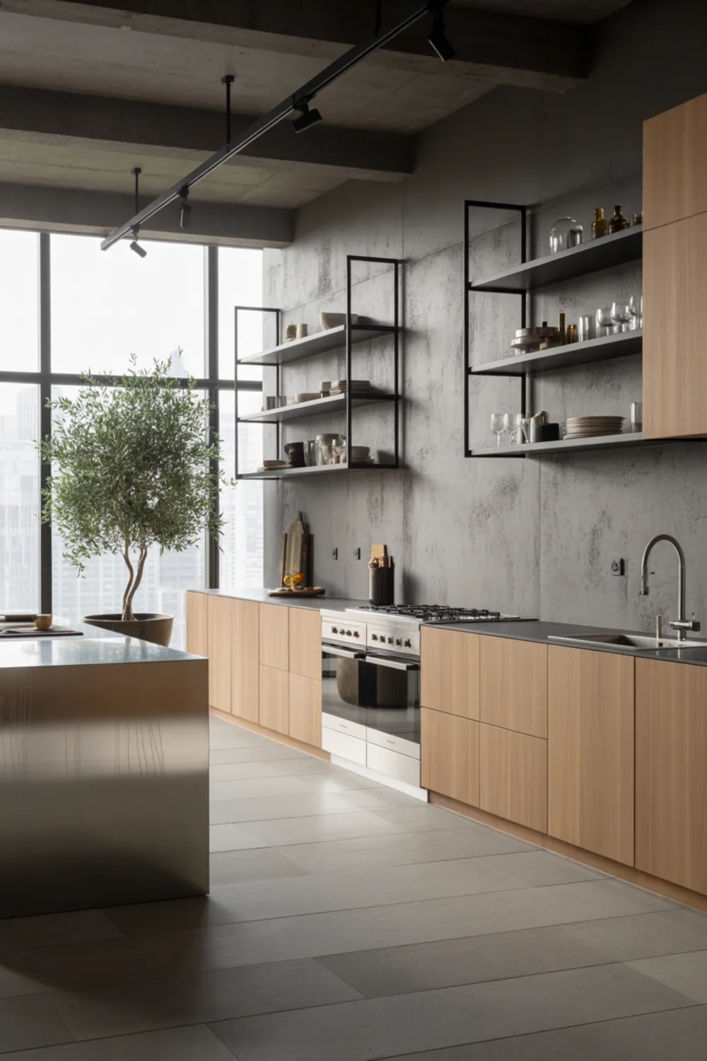 19. Light Wood & Concrete Modern Industrial Kitchen