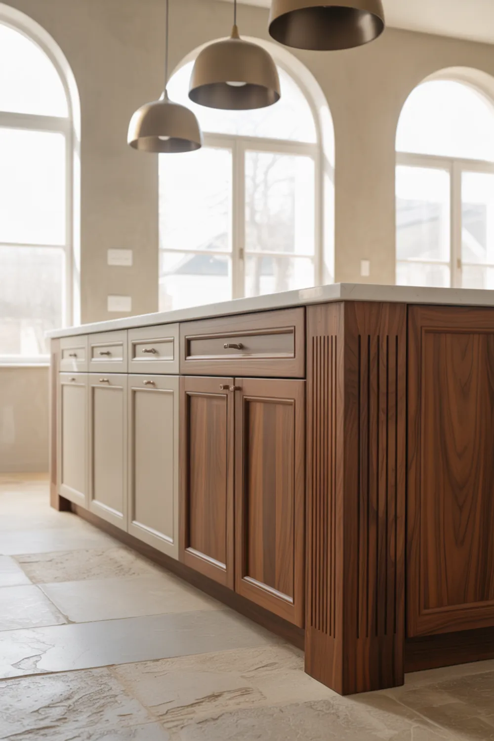 Think about adding hidden outlets or built-in convenience features so the island works both for prep and casual dining. Pendant lighting above the island becomes a finishing accent.