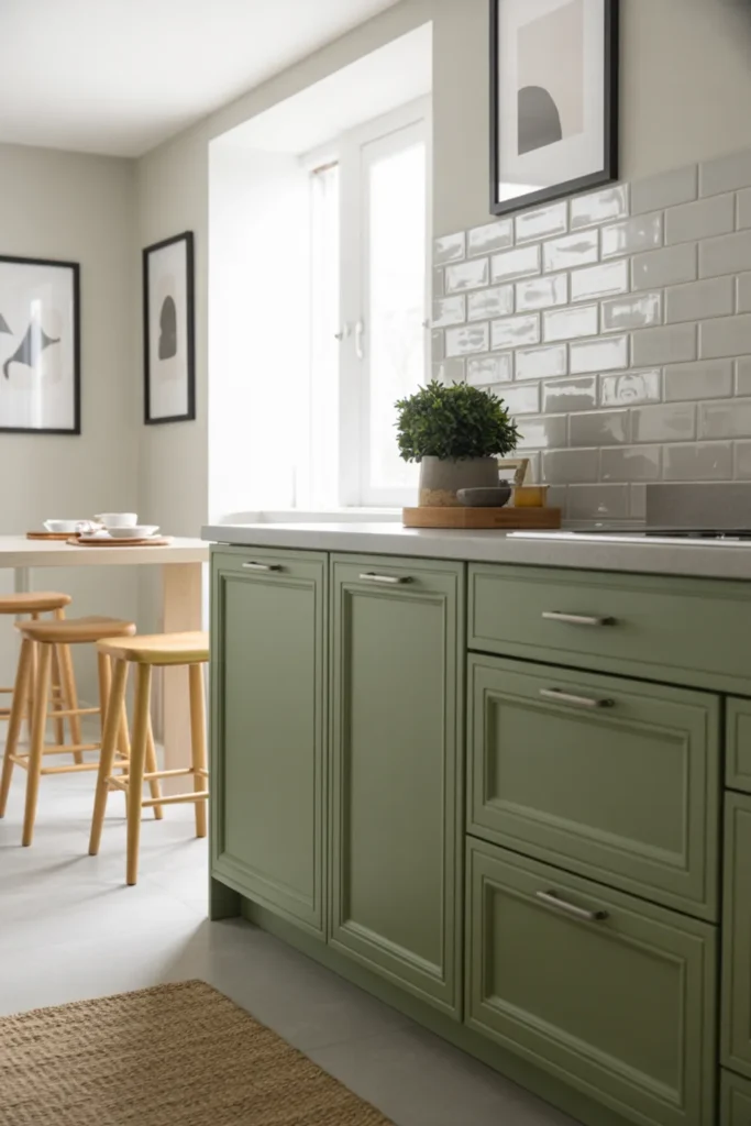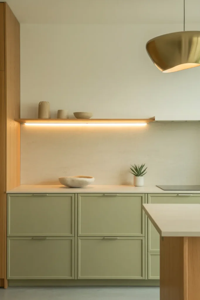 24. Sage Green Kitchen Aesthetic With Minimal Decor and Clean Lines