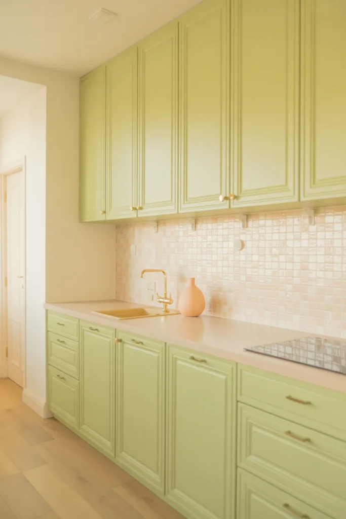 30. Pale Green and Pistachio Kitchen Cabinets as a Soft Sage Alternative