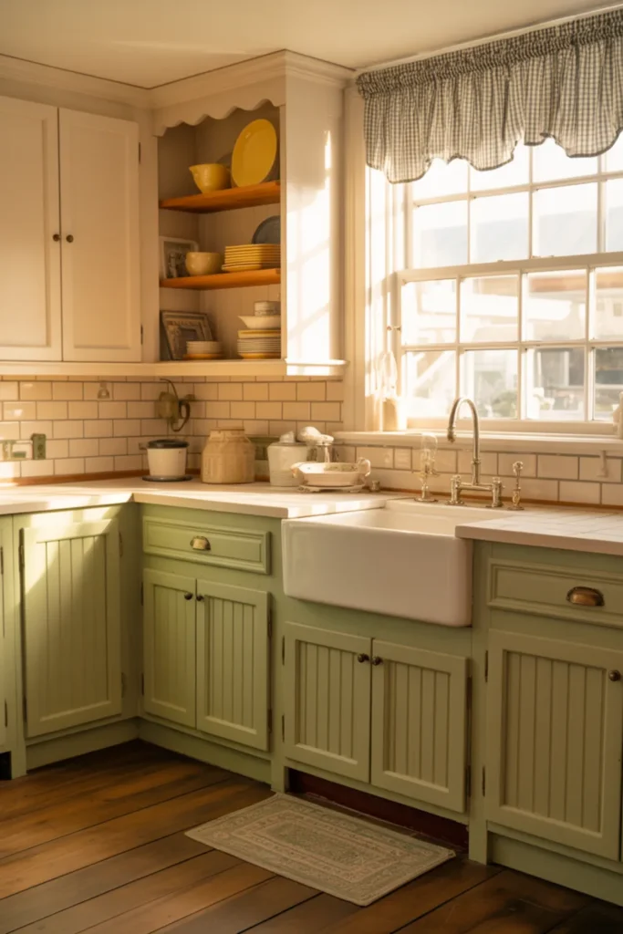 5. Sage Green and Cream Kitchen With Soft Vintage Charm