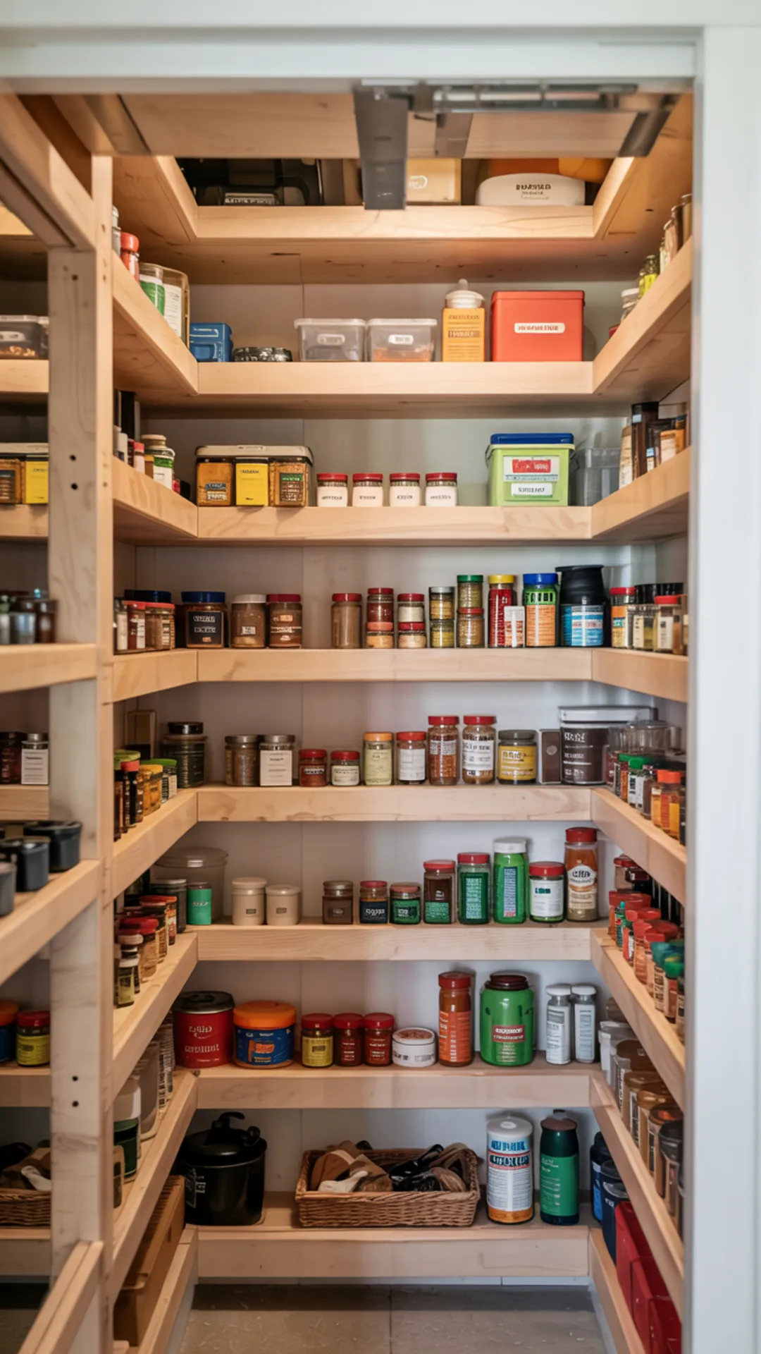 Quick resets become easy since every item has a home. With shelves in pantry closet arranged like this, youโll feel organized all week.