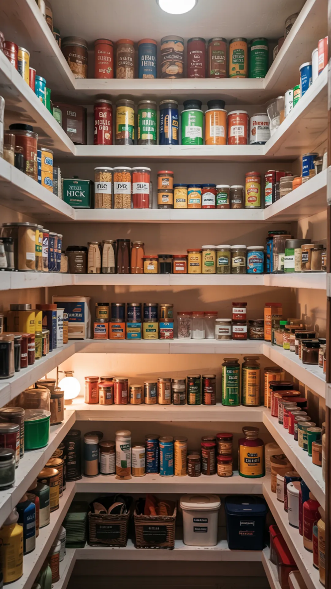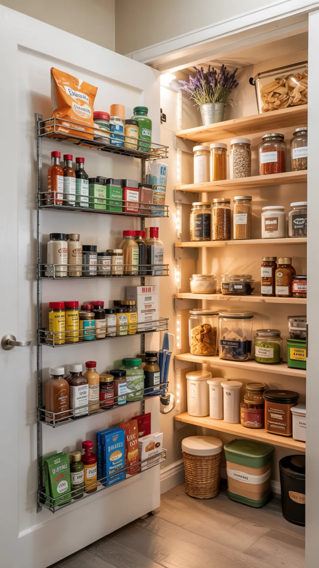 Warm lighting helps you see labels without squinting. Once you set it up, this small closet pantry feels less like a tight closet and more like a mini storage room that works.