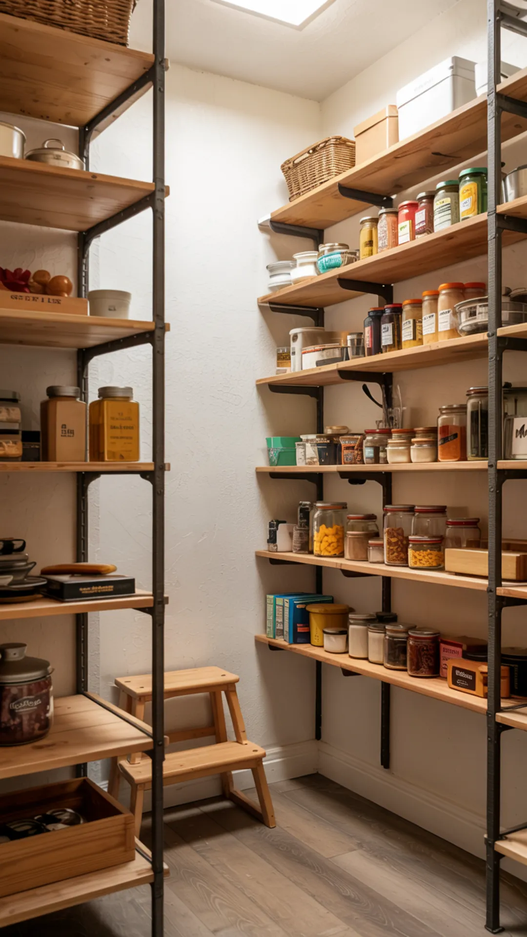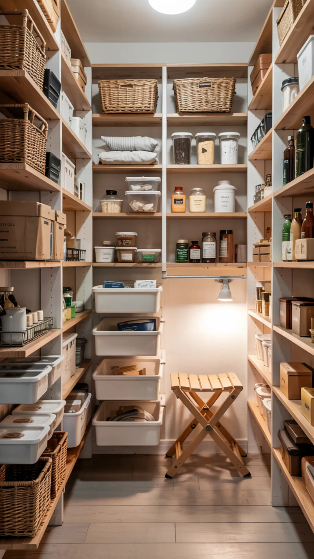 34) Small Narrow Pantry Organization With a Step Stool + Top Shelf Storage