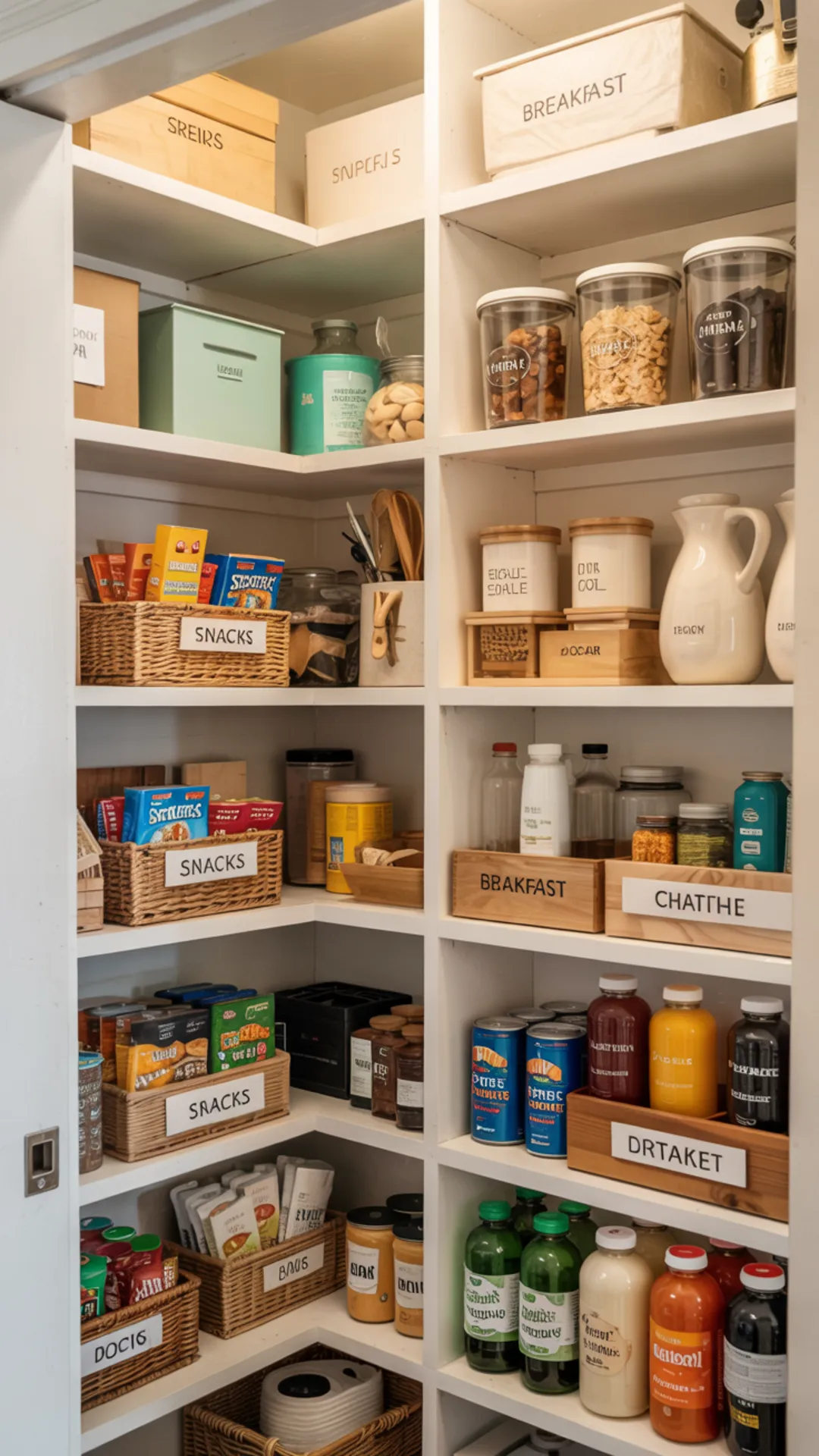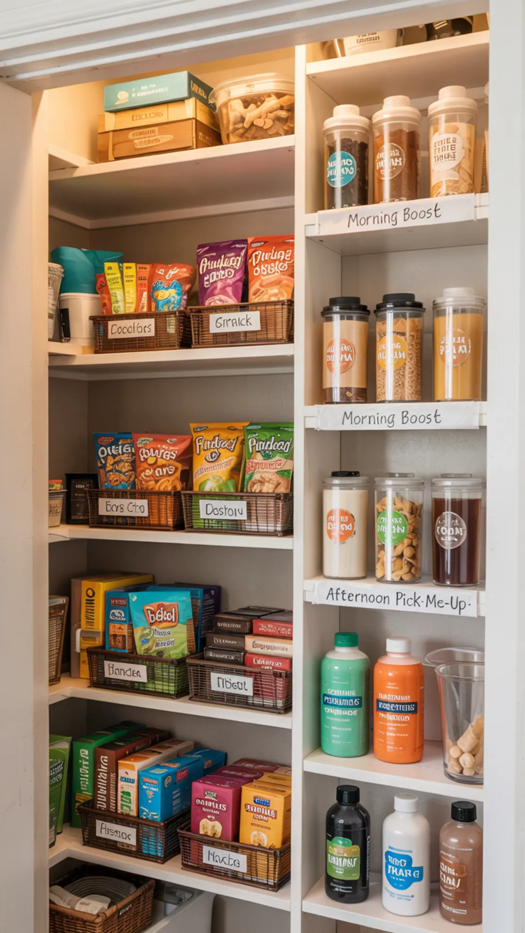 8) Compact Pantry With Clear Zones for Snacks and Breakfast