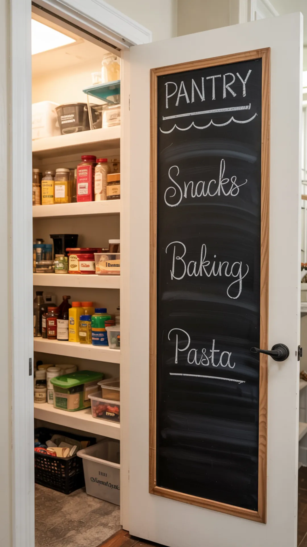 A pantry door can do more than just open and close. Adding a chalk label board gives you a quick way to track categories or jot down grocery reminders.