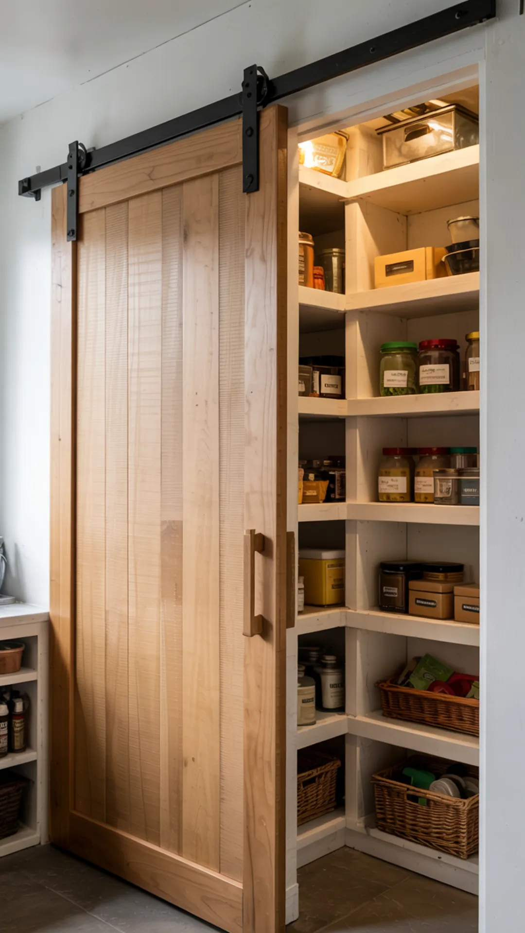 23) Barn Door Pantry Ideas for Small Spaces With a Slim Track