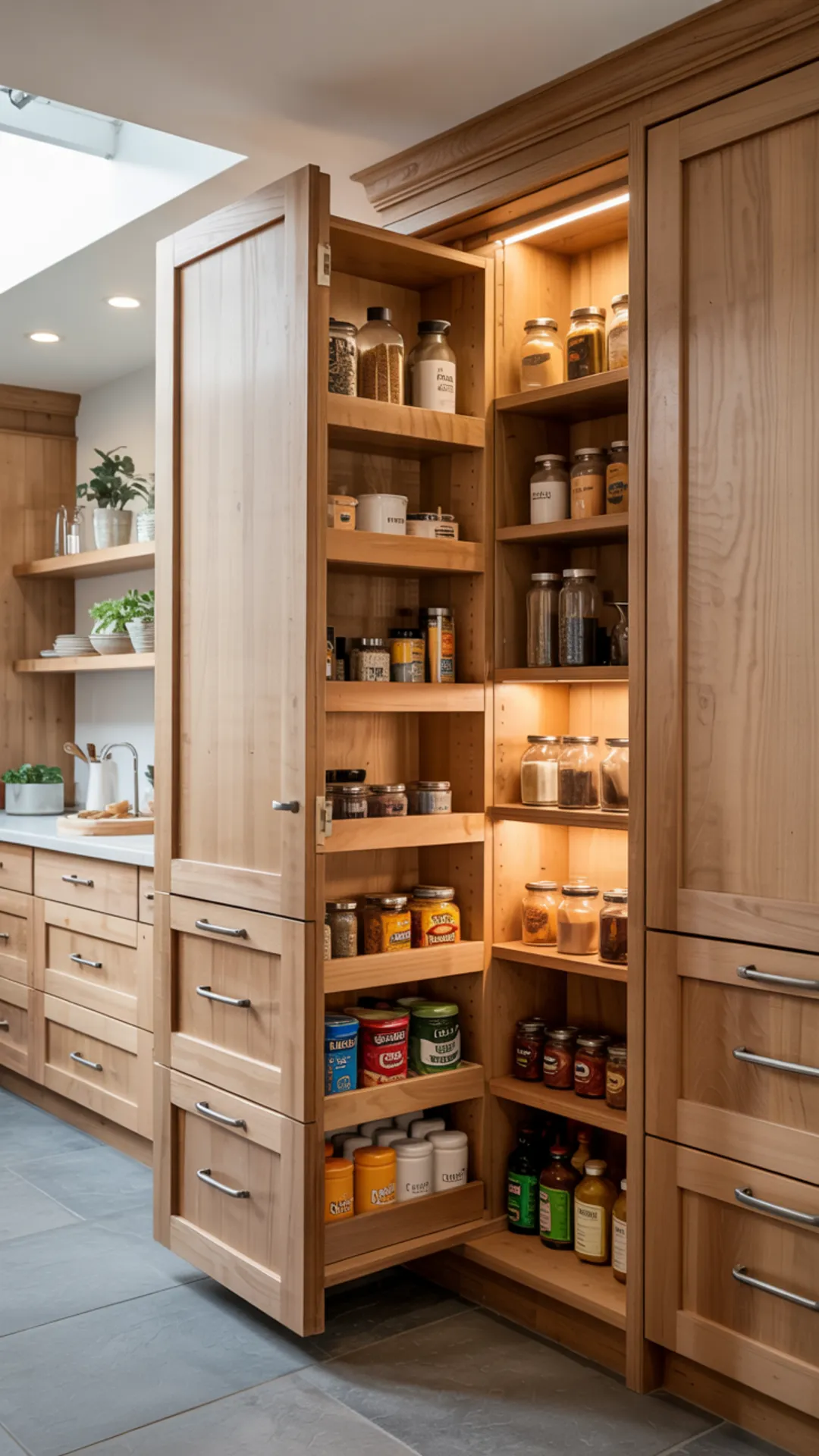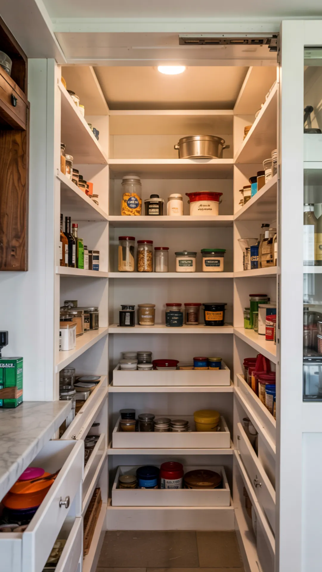 Good lighting helps you spot what you need at a glance. With these narrow pantry organization ideas, even tight shelves stay easy to manage.