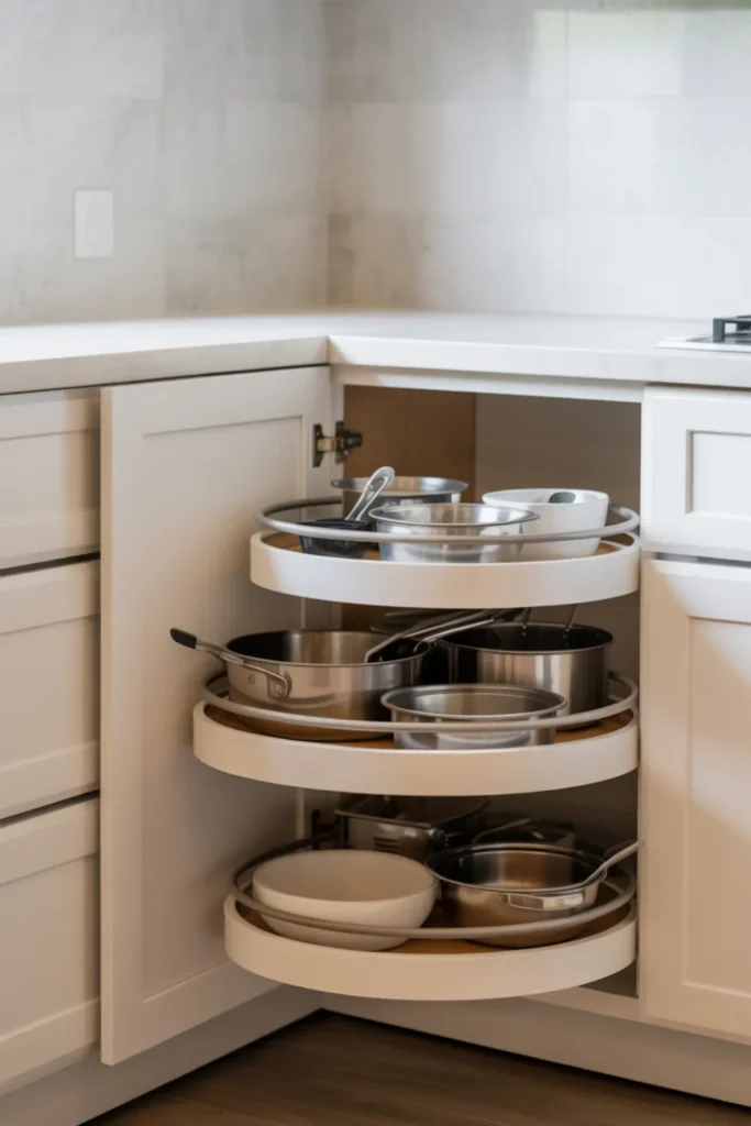 28) Space-Saving Kitchen Corner Storage (Lazy Susan Done Right)