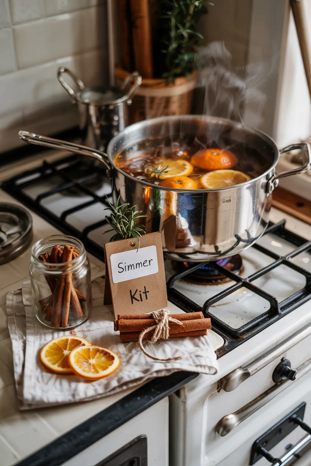 28. Cozy Kitchen Decor with a Stove Simmer Pot Styling Station