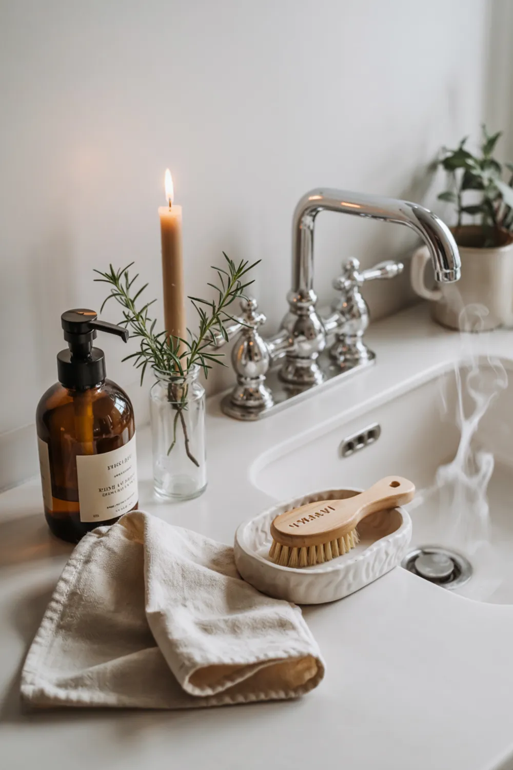 9. Scandinavian-Style Sink Corner with Everyday Luxuries